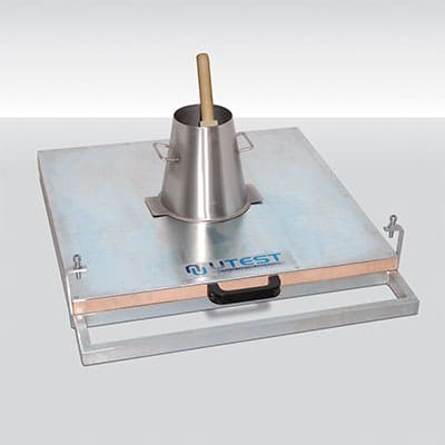 | Испытательный комплект используется для бетонных смесей с высокой обрабатываемостью и определяет показатель текучести как среднее арифметическое значение диаметра образца после работы с таблицей потоков. Аппарат состоит из двойного стального стола, верхнего стола размером 700x700 мм и навесного с одной стороны к нижнему столу. Верхний стол надписан, а все детали защищены от коррозии. Конус из нержавеющей стали имеет верхний диаметр 130 ± 2 мм, диаметр основания 200 ± 2 мм, высоту 200 ± 2 мм и толщину 1,5 мм. |
