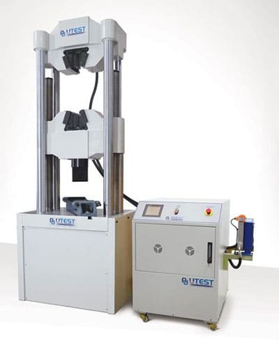 Гидравлическая универсальная испытательная машинаУниверсальная гидравлическая испытательная машина на растяжение UTM 4000 предназначена для испытания железосодержащих материалов на структурные показатели, такие как предел текучести и предел прочности при растяжении. Помимо испытаний на растяжение универсальные испытательные машины могут также использоваться для испытаний на сжатие вплоть до производительности машины. Максимальная безопасность поддерживается на универсальной испытательной машине мощностью 600 кН с помощью концевого выключателя на нижней рукоятке и поршня, а также предохранительных обратных клапанов в гидравлической системе. Гидравлический силовой агрегат работает бесшумно. Плоские образцы толщиной 0-40 мм и круглые образцы 8-32 мм можно тестировать с помощью удобных в использовании гидравлических губок, соответствующих стандартам. Тензодатчик используется для измерения нагрузки. Измерение деформации выполняется встроенным в машину электронным датчиком смещения, если для измерения деформации также можно использовать внешний экстензометр, установленный на образце. Измерения деформации могут быть выполнены непосредственно с экстензометра, установленного на образце. Тесты могут проводиться полностью автоматически с помощью цифрового блока управления или компьютера. Машина завершит тест с установленной скоростью и автоматически переключится в исходное положение. Универсальная гидравлическая испытательная машина UTM-4000 имеет два испытательных пространства для испытаний на растяжение и сжатие. Пользователь может быстро переключаться между испытаниями на растяжение и сжатие, не снимая тяжелые приспособления. Эта гибкая конструкция также помогает обеспечить безопасность, снижает усилия оператора и повышает производительность. Расстояние между захватами можно установить с помощью системы ручного управления с приводом от двигателя. С открытыми передними гидравлическими клиновыми захватами пользователь может легко загрузить образец. |
