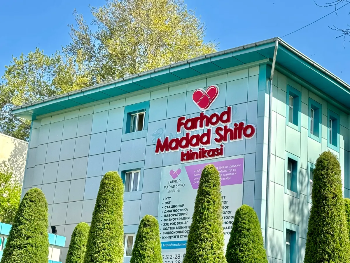 FARHOD MADAD SHIFO CLINIC is a modern, multidisciplinary clinic located in the Kibray district of the Tashkent region, providing high-quality medical services to the public for 17 years.