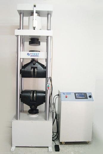Hydraulic universal testing machineThe UTM 4000 universal hydraulic tensile testing Machine is designed for testing iron-containing materials for structural parameters such as yield strength and tensile strength. In addition to tensile testing, universal testing machines can also be used for compression testing up to the performance of the machine. Maximum safety is maintained on a universal test machine with a capacity of 600 kN by means of a limit switch on the lower handle and a piston, as well as safety check valves in the hydraulic system. The hydraulic power unit operates silently. Flat samples with a thickness of 0-40 mm and round samples of 8-32 mm can be tested using easy-to-use hydraulic sponges that meet the standards. The load cell is used to measure the load. The deformation measurement is performed by an electronic displacement sensor built into the machine, if an external extensometer mounted on the sample can also be used to measure the deformation. Strain measurements can be performed directly from an extensometer mounted on the sample. The tests can be carried out completely automatically using a digital control unit or a computer. The machine will complete the test at the set speed and automatically switch to the starting position. The UTM-4000 universal hydraulic testing machine has two test spaces for tensile and compression testing. The user can quickly switch between tensile and compression tests without removing heavy fixtures. This flexible design also helps to ensure safety, reduces operator effort and increases productivity. The distance between the grippers can be set using a motor-driven manual control system. With the open front hydraulic wedge grips, the user can easily load the sample. |