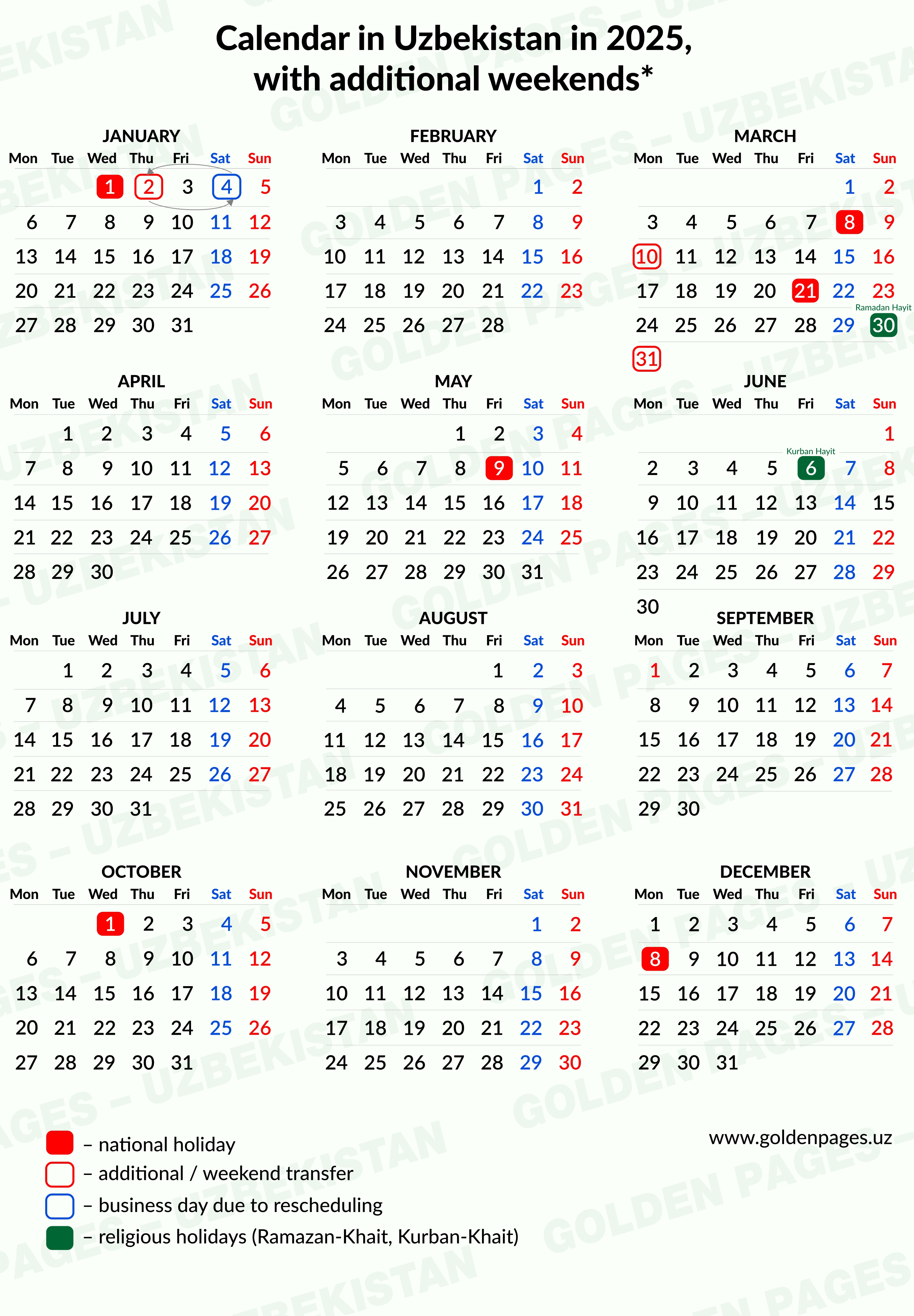 Weekends and holidays in Uzbekistan 2025