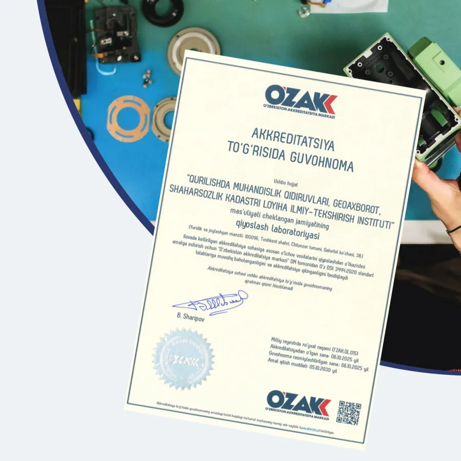 "O'ZGASHKLITI" QOSHIDAGI XALQARO AKKREDITATSIYADAN O'TGAN METROLOGIYA GEODEZIYA XIZMAT KO'RSATISH MARKAZI - Toshkentda