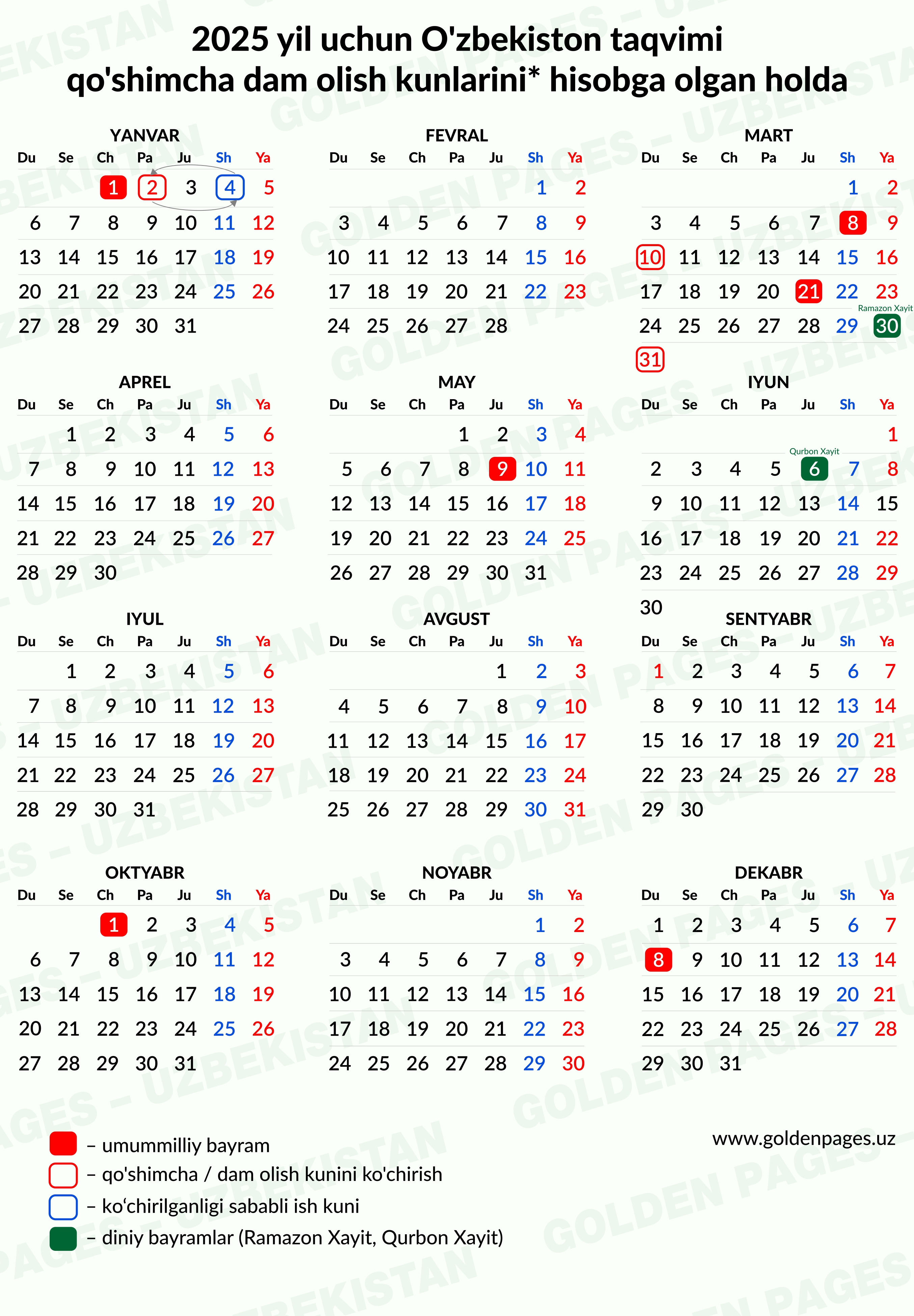 O'zbekiston taqvimi 2025
