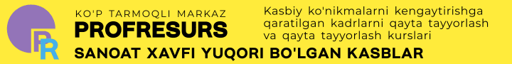 O'zbekiston Respublikasi sanoat xavfsizligi va mehnatni muhofaza qilish davlat qo' mitasi qoidalariga muvofiq kadrlar tayyorlash, qayta tayyorlash.
